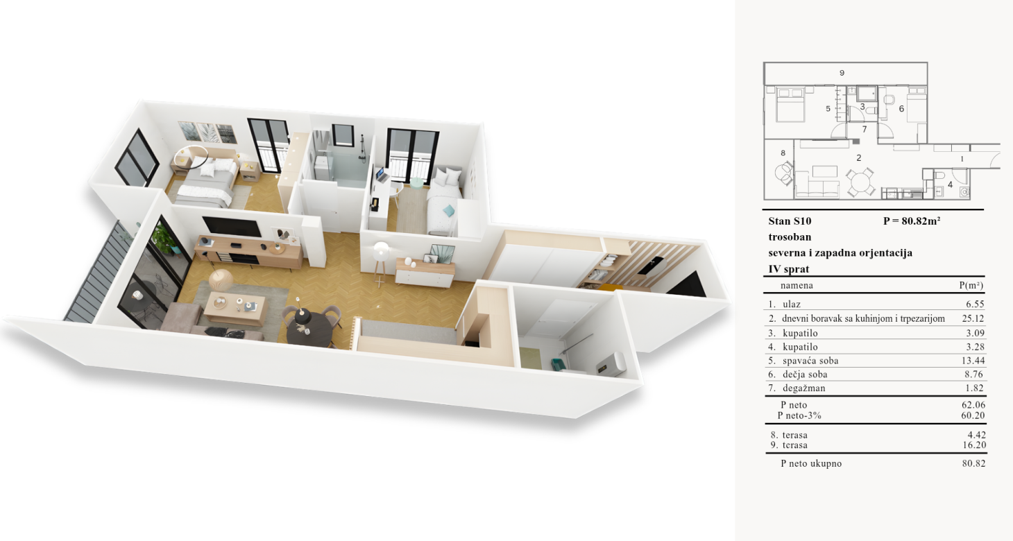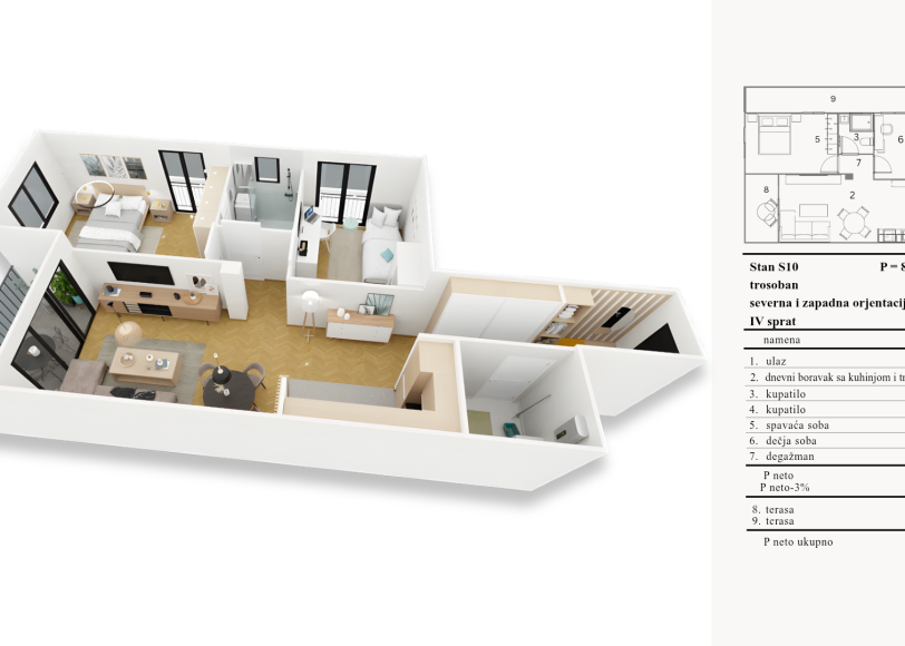Trosoban – 4.sprat – severna i zapadna orjentacija